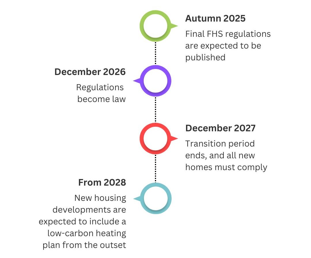 - Heat pumps: The standard promotes the use of low-carbon heating systems, with air source or ground source heat pumps expected to be the main technology.